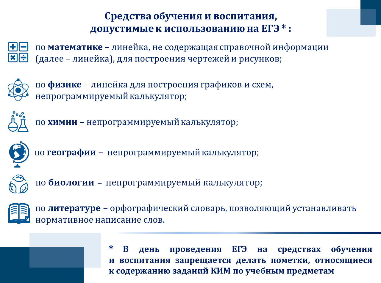Средства обучения и воспитания, допустимые к использованию на ЕГЭ