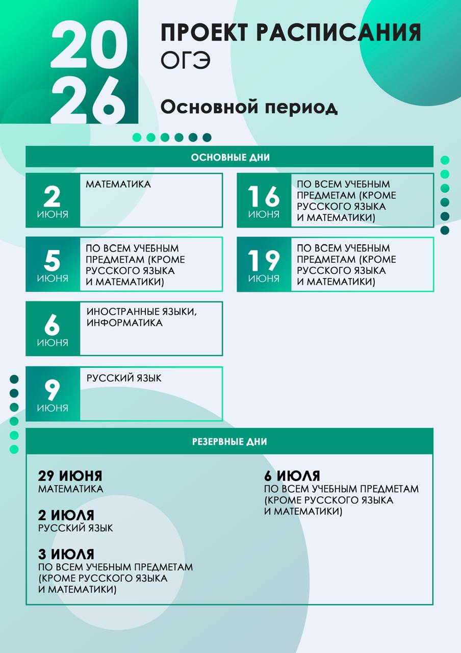 ОГЭ в 2026 году пройдет в три этапа: досрочный (с 21 апреля по 18 мая), основной (с 2 июня по 6 июля) и дополнительный (с 3 по 25 сентября).