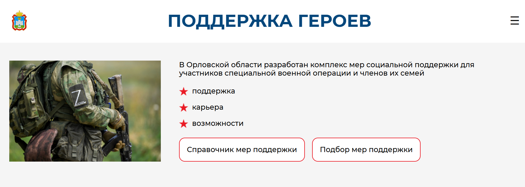 В Орловской области разработан новый информационный портал «ПОДДЕРЖКА ГЕРОЕВ»