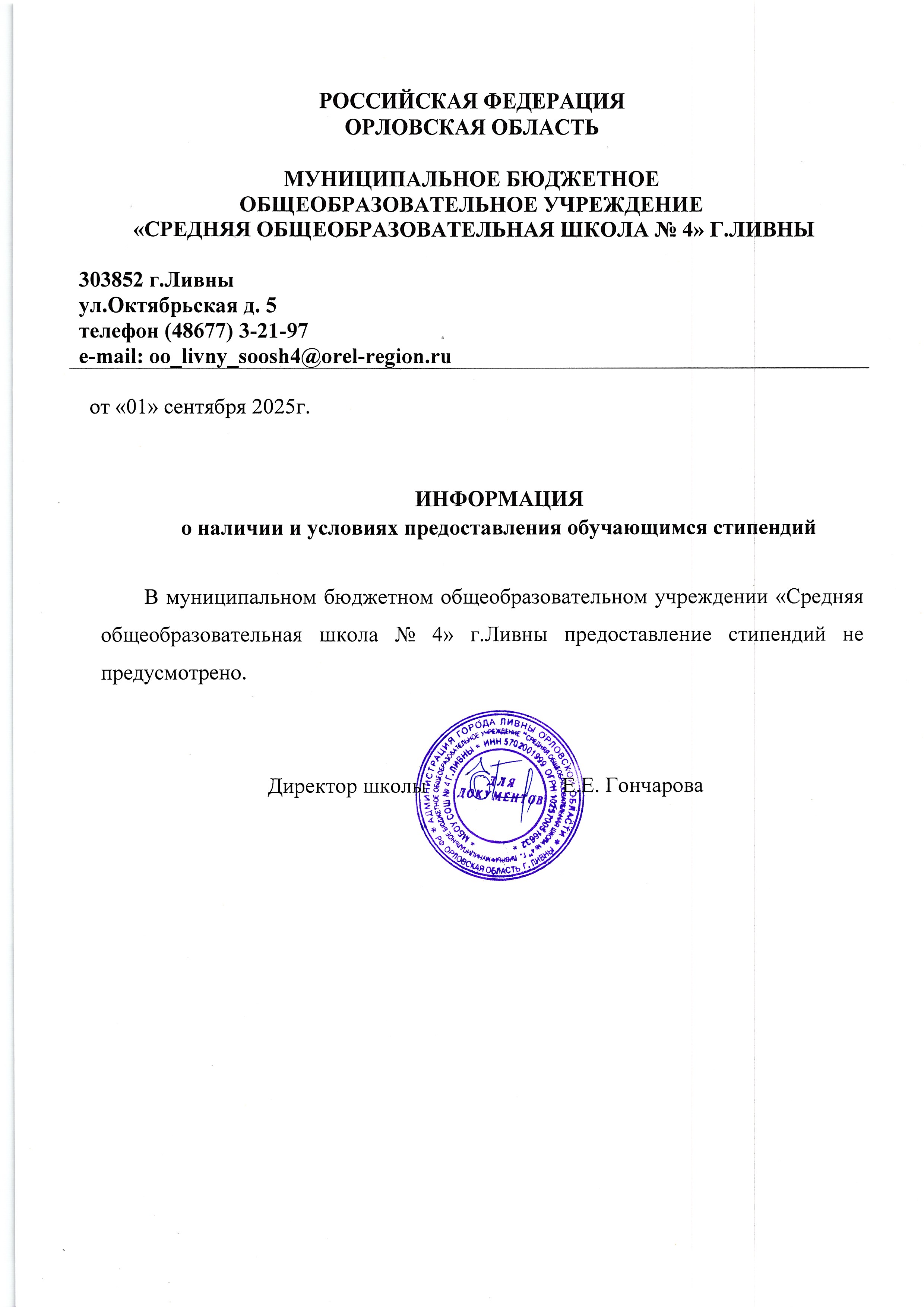 Информация о наличии и условиях предоставления обучающимся стипендий